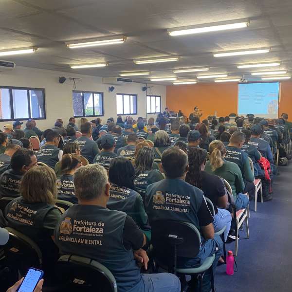 As técnicas da Secretaria Municipal de Saúde, Distrito Técnico de Endemias III, Caroline Morais e Emanuela Feitosa Nóbrega da Fundação de Ciência, realizam formação no FormaCE sobre o Projeto Fortaleza Limpa, realização da Prefeitura de Fortaleza.